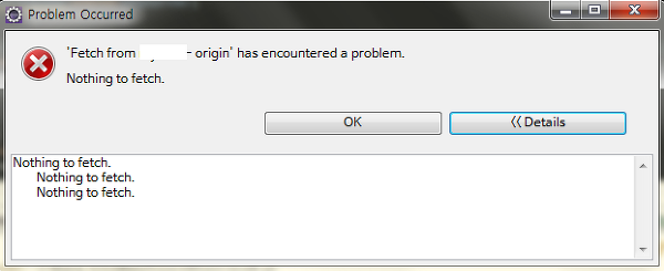 이클립스에서 git을 연동하고 pull 또는 fetch from upstream을 진행하면 Nothing to fetch 에러가 발생.