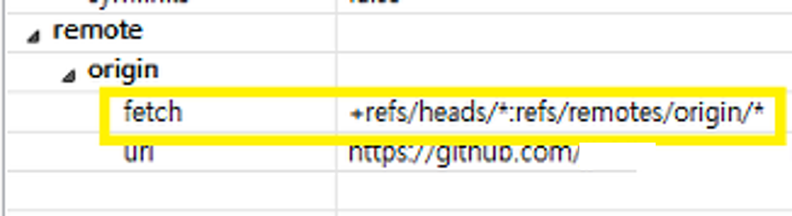 2. Configuration - remote/origin/fetch 항목 있는지 확인.