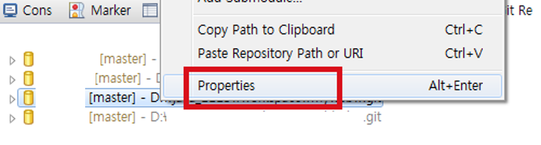 1. Git Repositories - 프로젝트 우클릭 - Properties