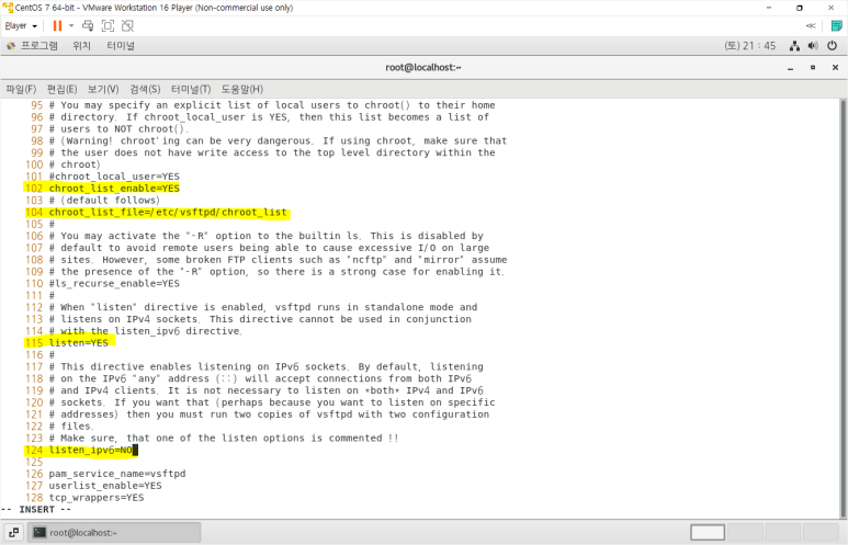 chroot_list_file=/etc/vsftpd/chroot_list로 변경.