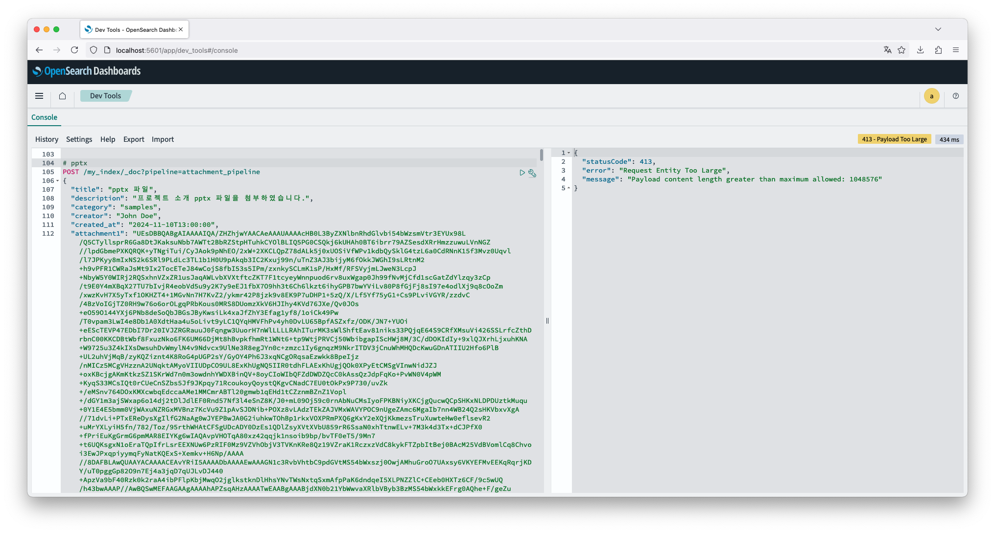 - 1MB를 초과하는 base64 encoded data를 인덱싱하면 에러 발생